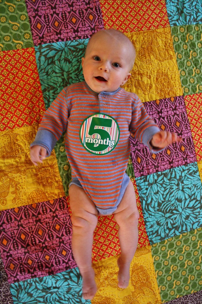 You are five months old my giggling, squealing, mo-meal eating boy! Your daddy and I have had the best time with you this month. You have become so interactive and LOUDLY react to the things that happen around you… I have no idea where you get that from. *sarcasm