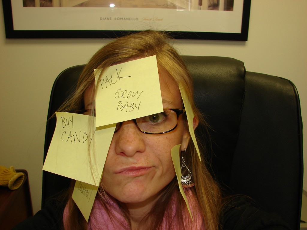 So you can see how a list is helpful to me eh? (I’m practicing my Canadian in case I want to drive up to Vancouver while I’m the big traveler). I’m keeping a sense of humor through it all and can just laugh at how every time I go to visit sweet hubby at training I will be bigger… and bigger… and bigger.