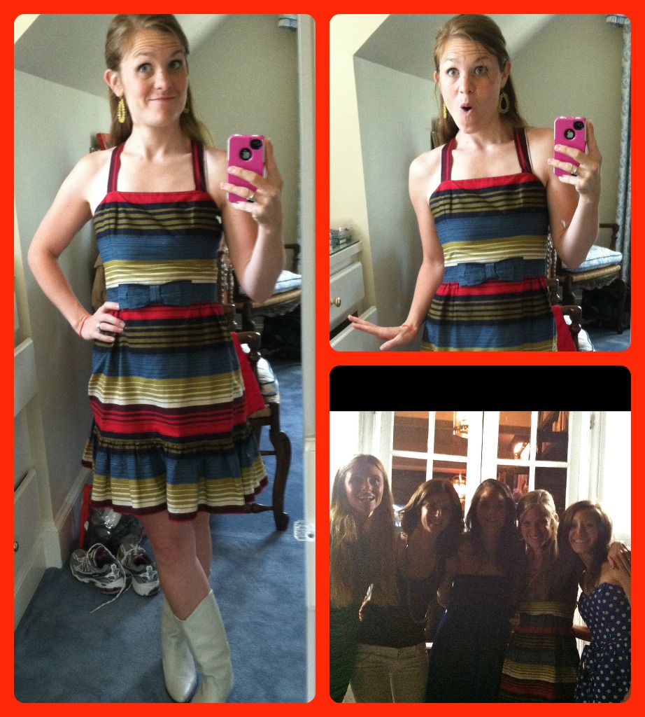 Saturday night after he went to bed, I went out with my cousin and some of her girlfriends. She is moving to CA next week so it was a fun farewell supper. I gotz all kindza dressed up with a fun summer dress and my vintage white cowboy boots. It got real. And by real, I mean I was in bed by 11pm.