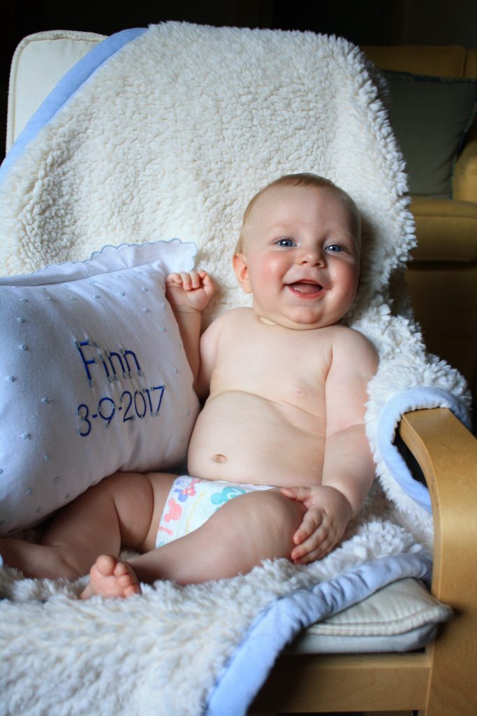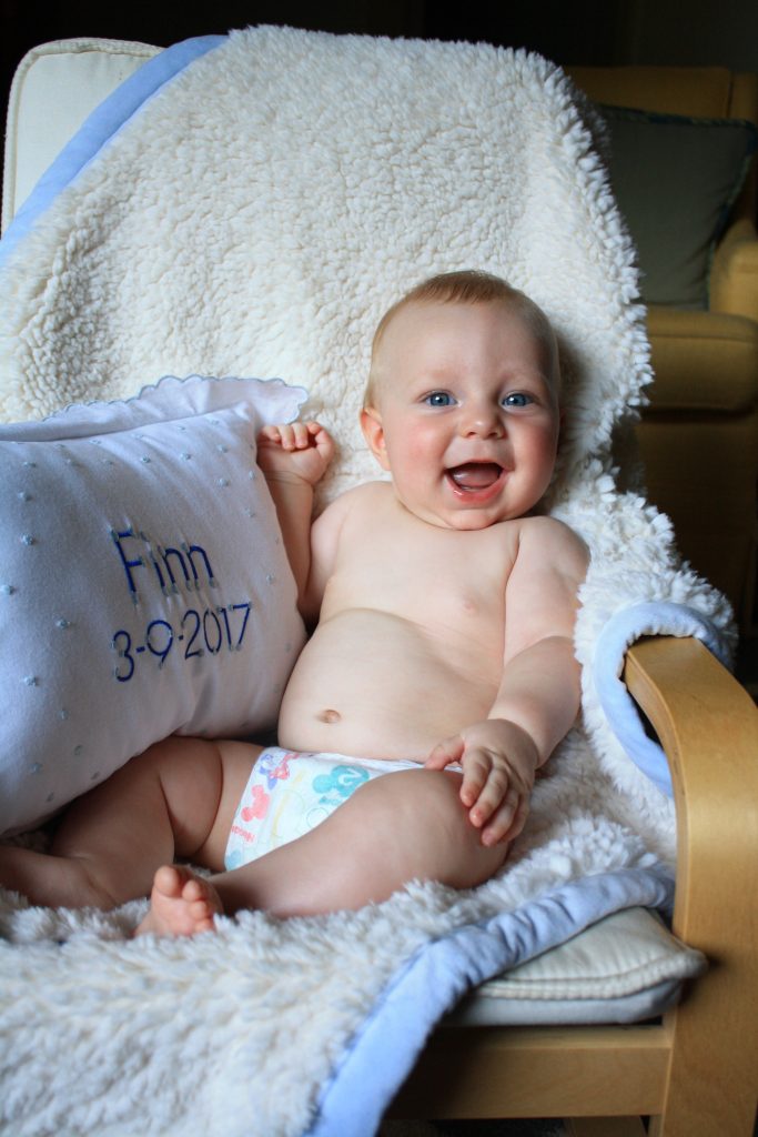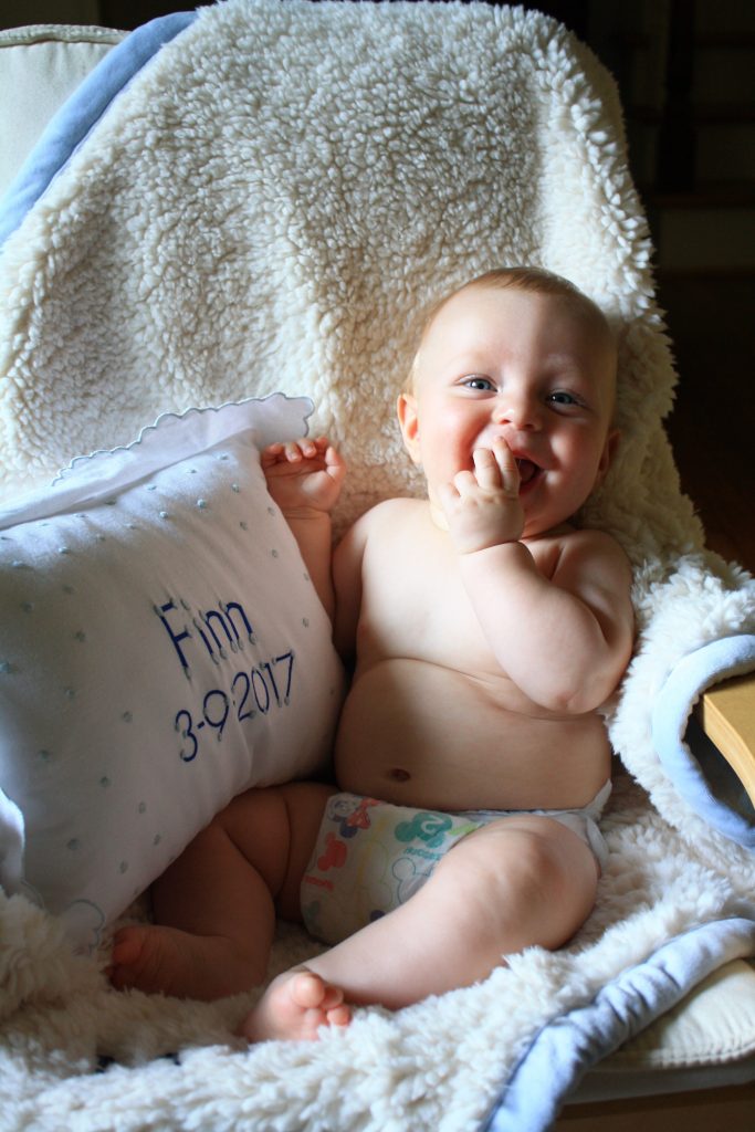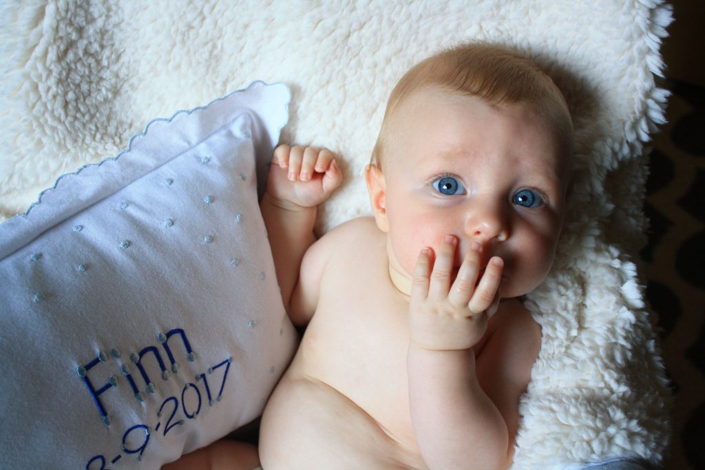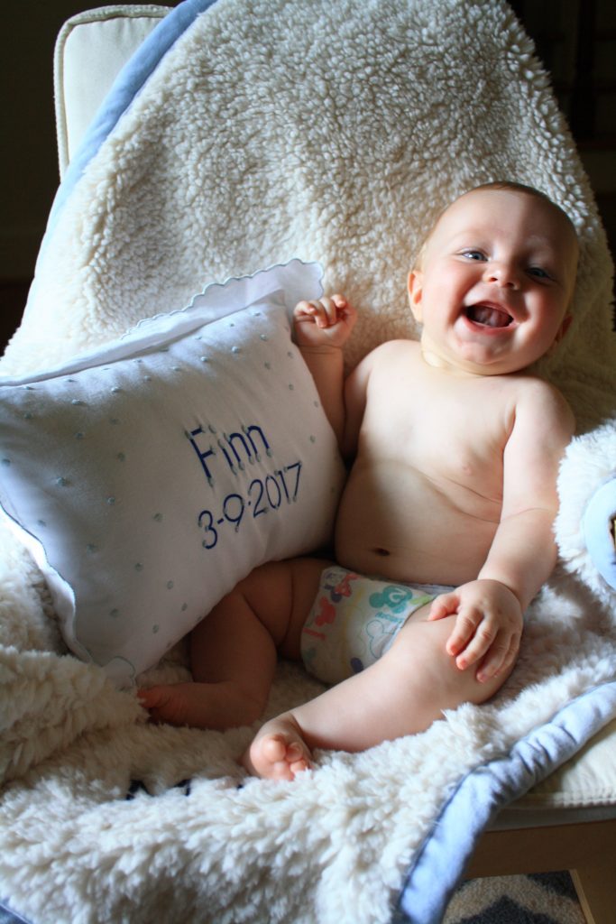 Finn! You’re 4 months! You are getting better at tummy time and love to roll over front to back. You can hold your head so well and have started some oatmeal this month! You love it- duh.